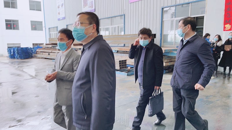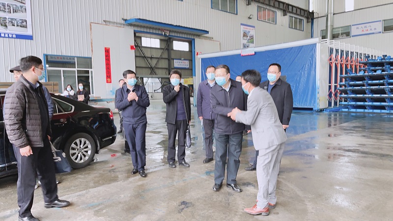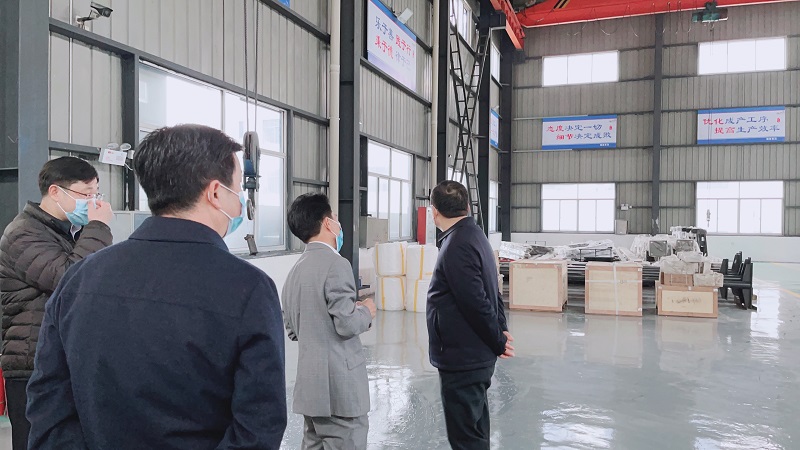 米兰官方网站-米兰(中国) 机械董事长向领导介绍介绍项目概况,随后,大家一同参观车间的生产工艺以及半成品